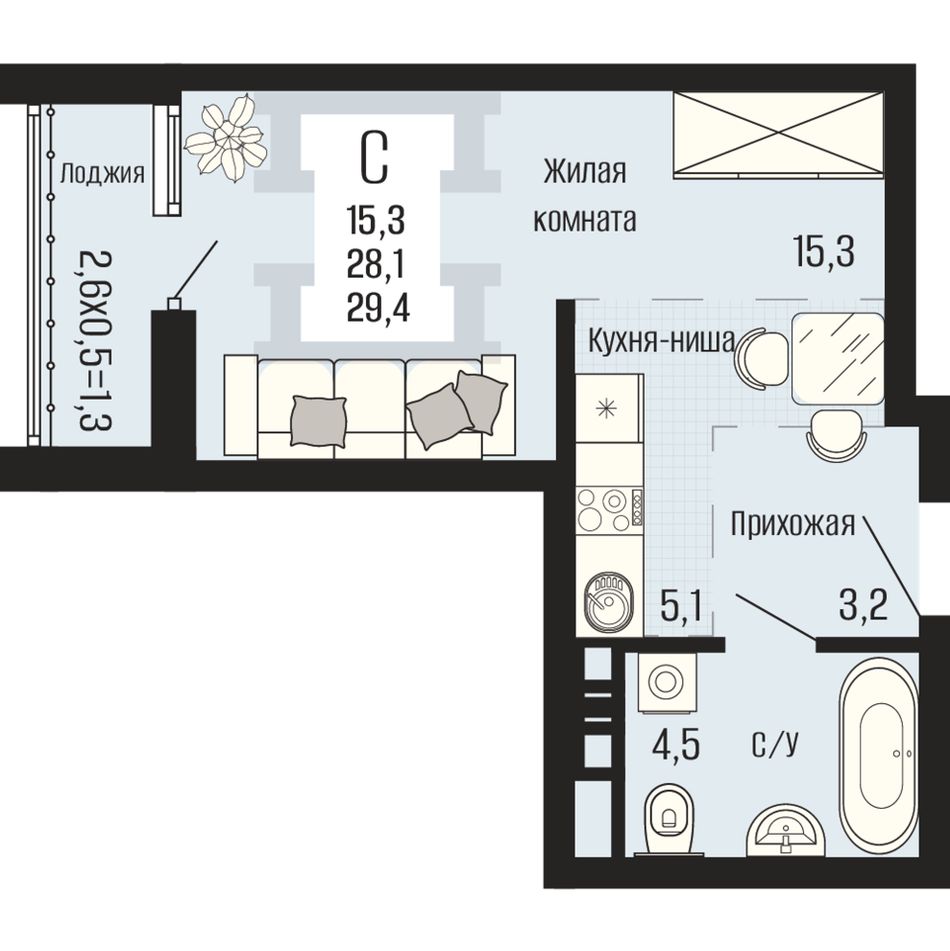 Общая площадь29,4 м²