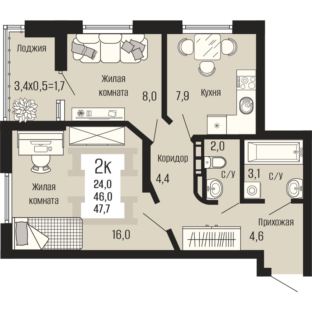 Общая площадь47,7 м²