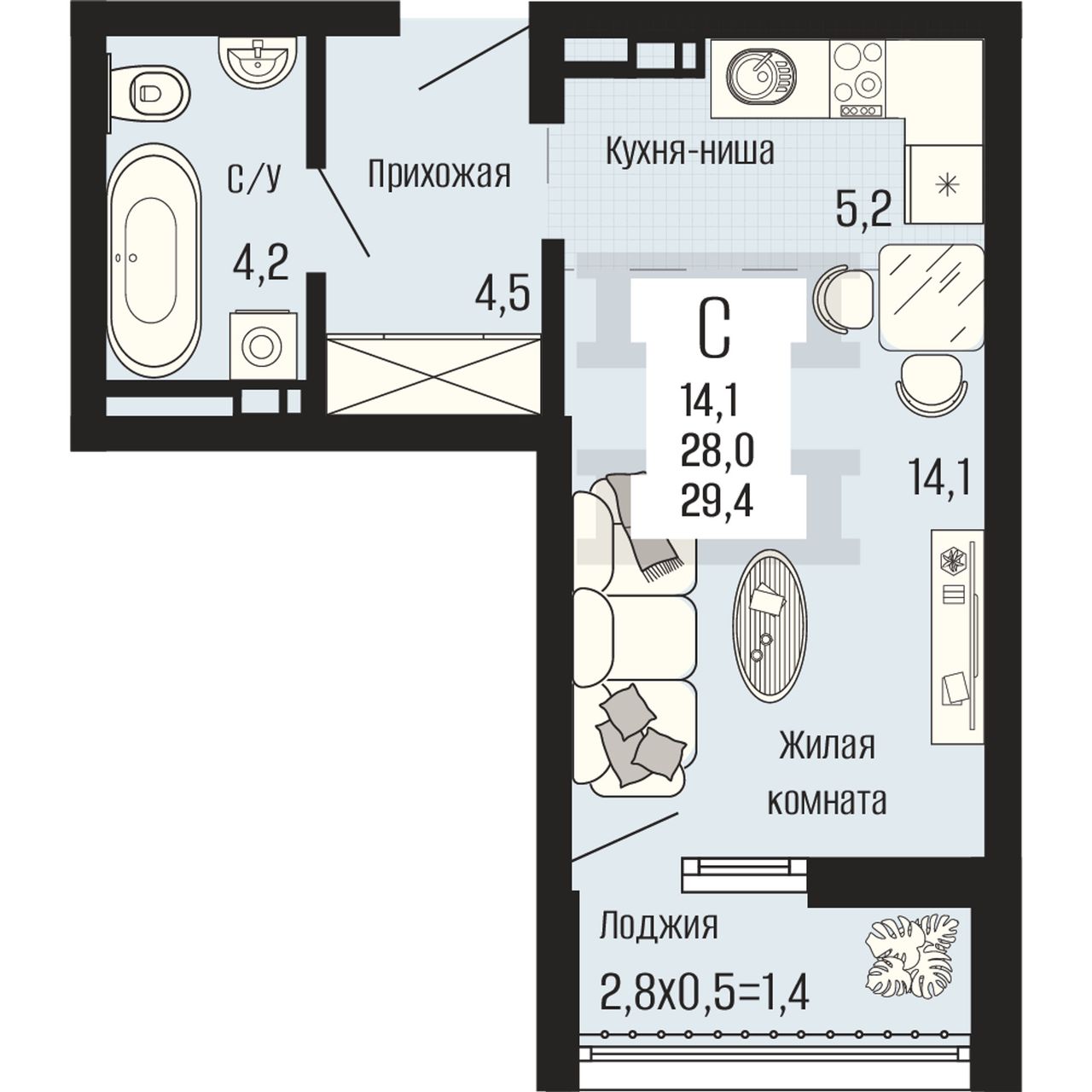 Общая площадь29,4 м²