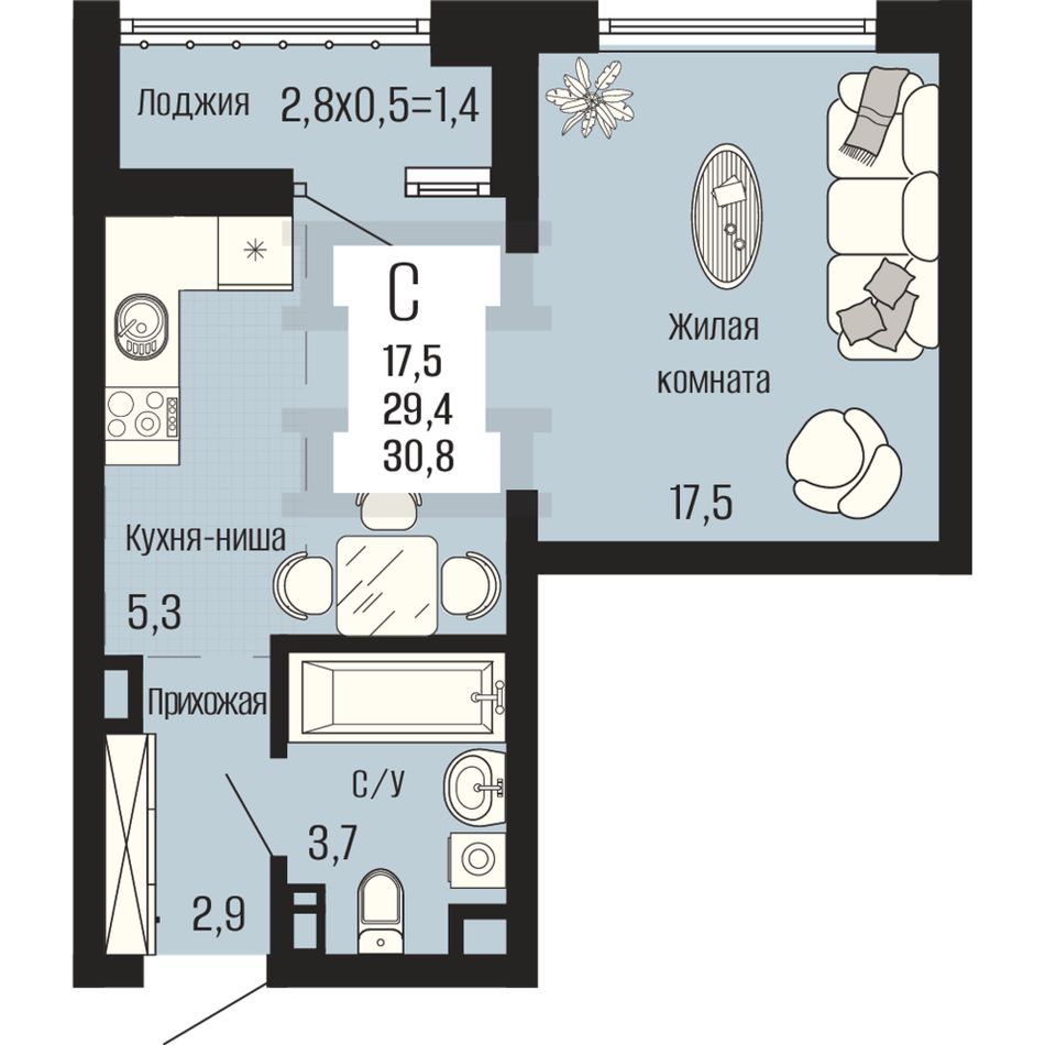 Общая площадь30,8 м²