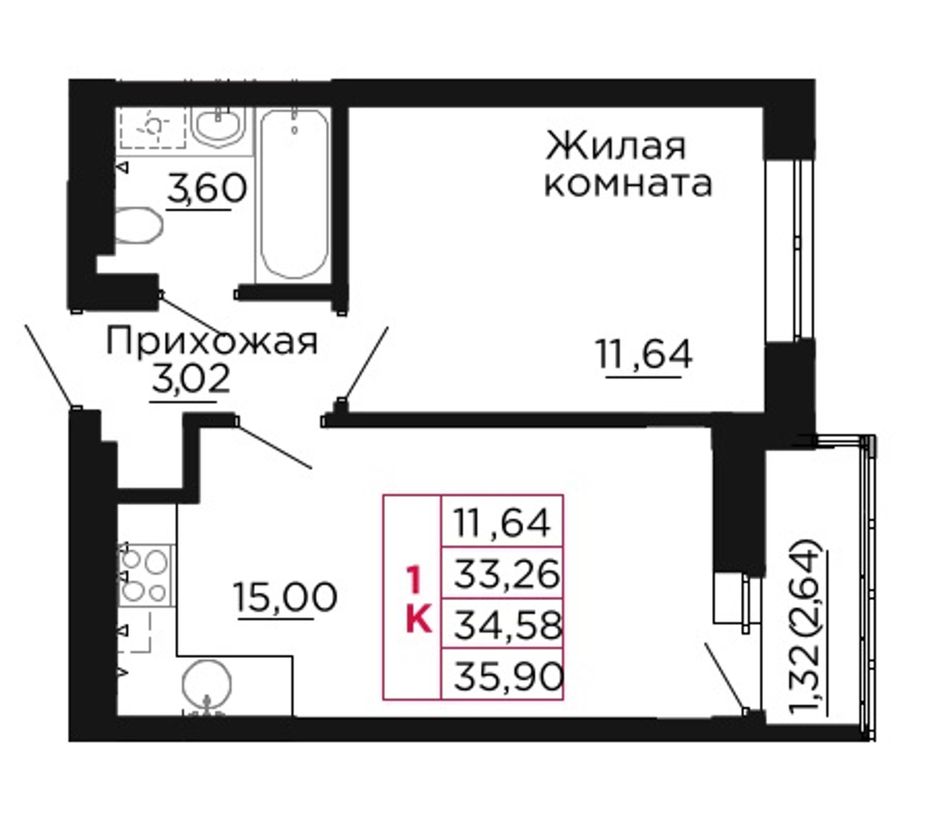 | 1-комн. | 43 м² | 5,5 - 7 млн ₽ |