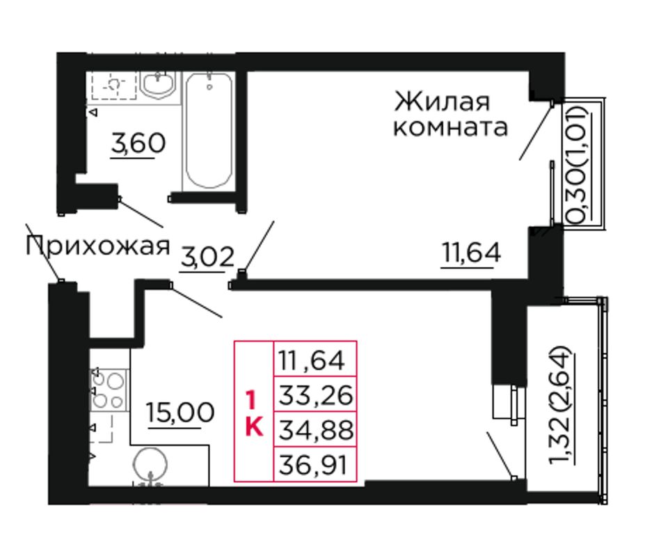 Общая площадь35,3 м²