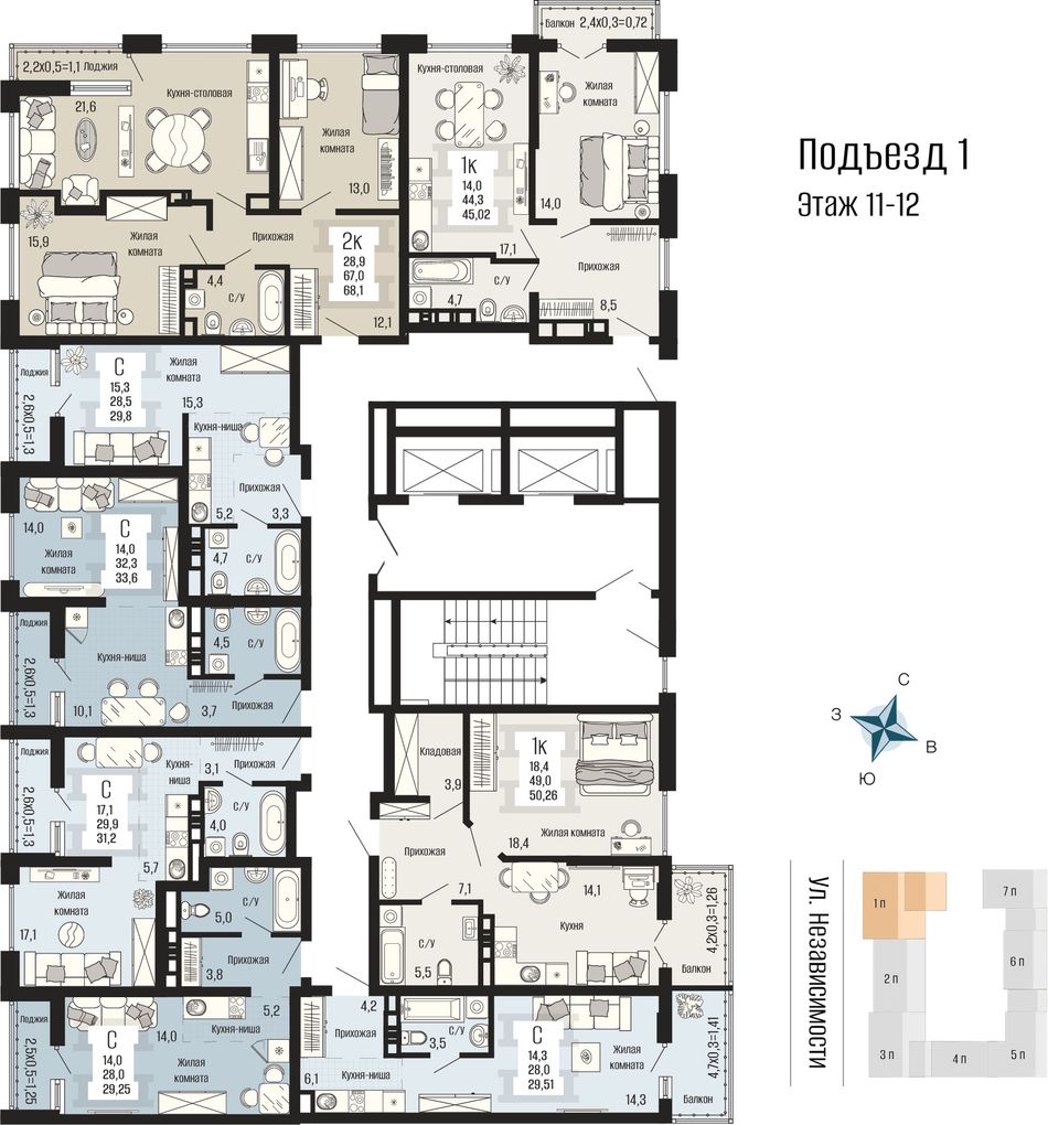 • Просторные планировки с панорамным остеклением. От студий до трехкомнатных квартир. Светлые и функциональные решения.