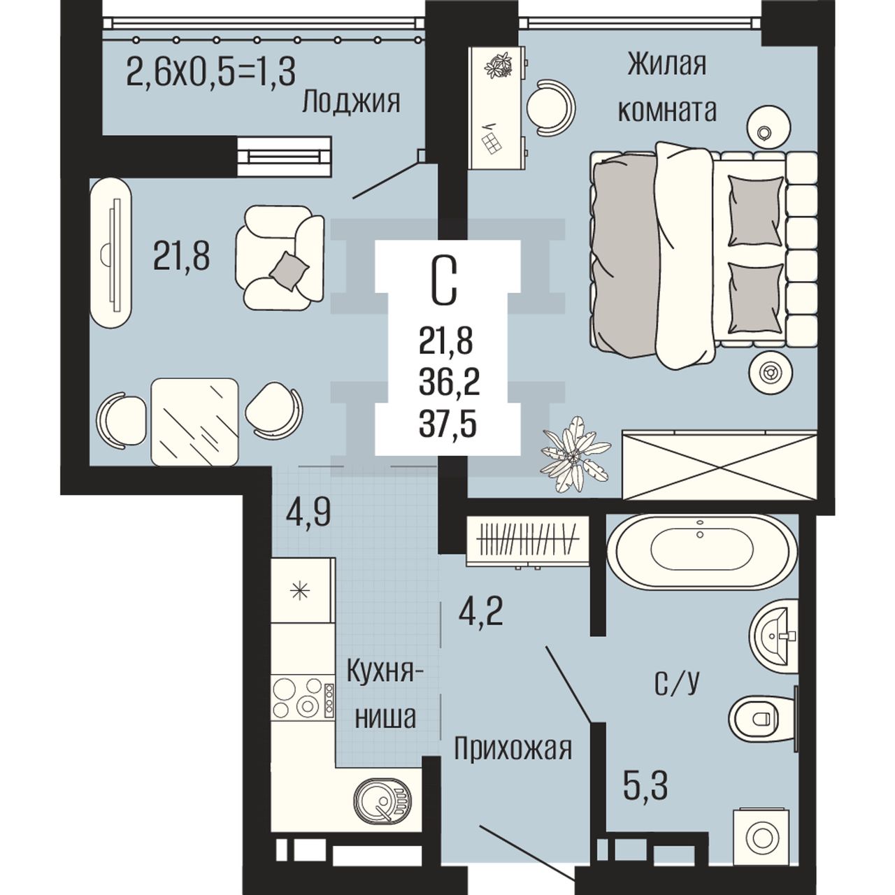 Общая площадь37,5 м²