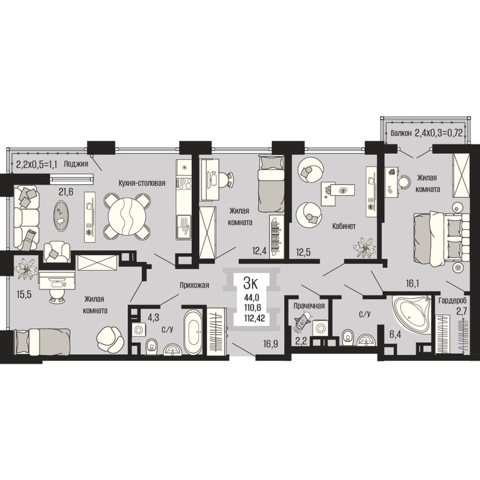 Общая площадь112,42 м²