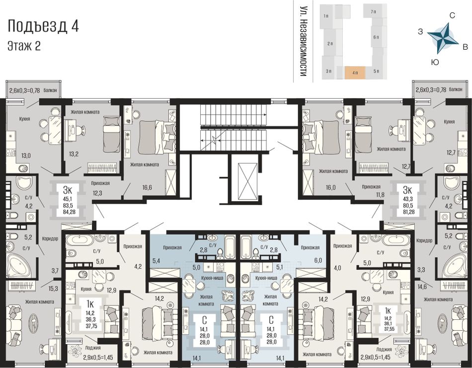 • Просторные планировки с панорамным остеклением. От студий до трехкомнатных квартир. Светлые и функциональные решения.
