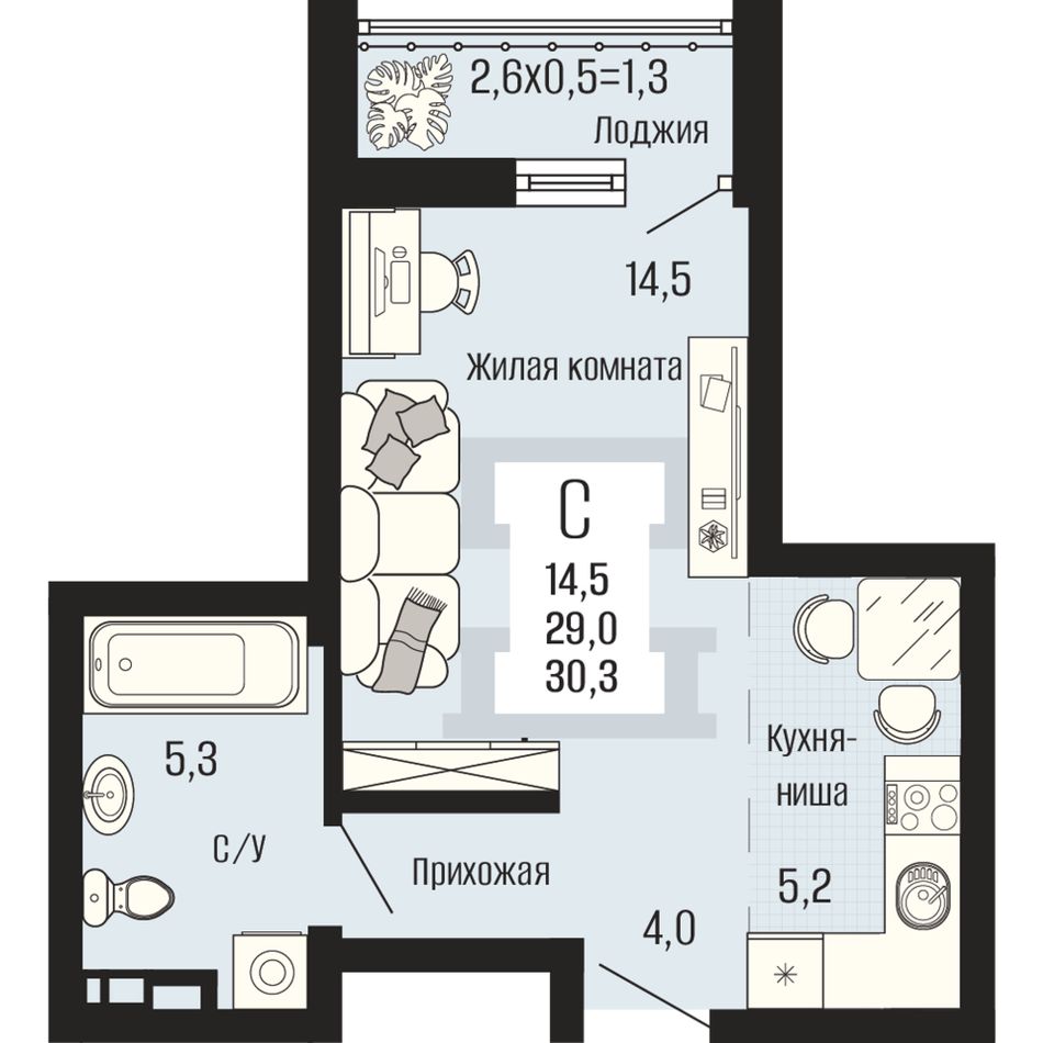Студия — 30,3 м² 6/12 эт. в Половецкий