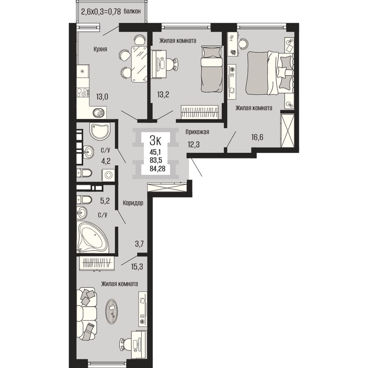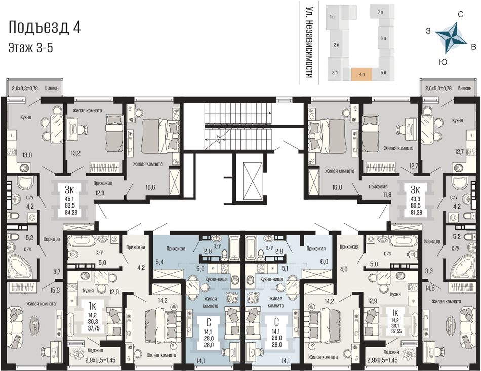 Общая площадь84,28 м²