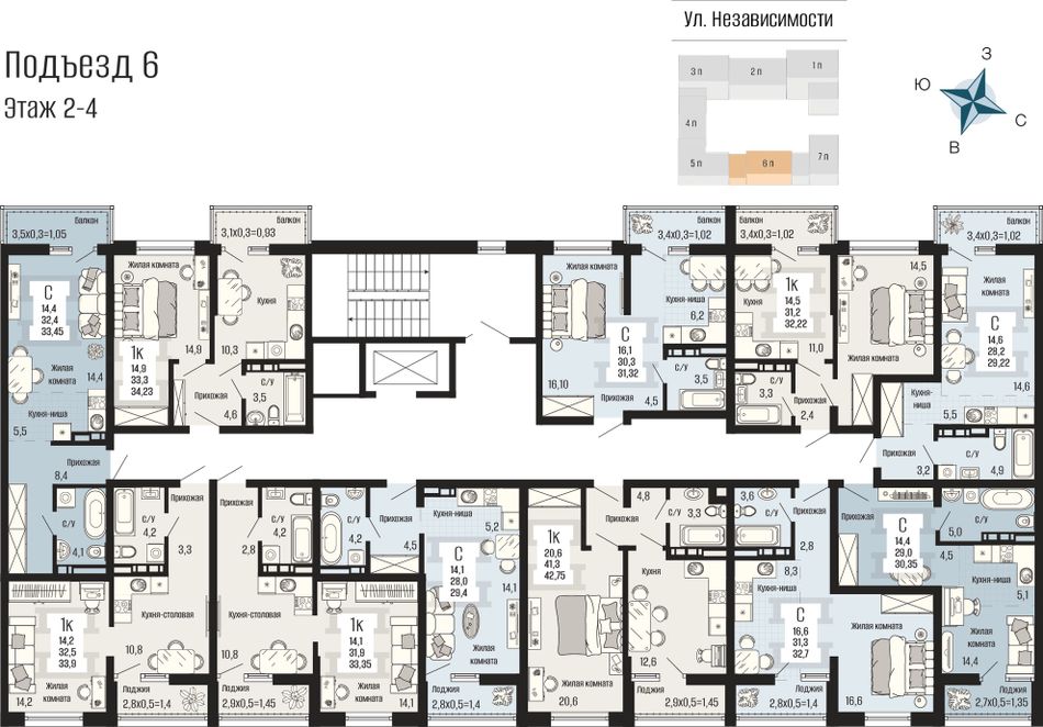 • Просторные планировки с панорамным остеклением. От студий до трехкомнатных квартир. Светлые и функциональные решения.