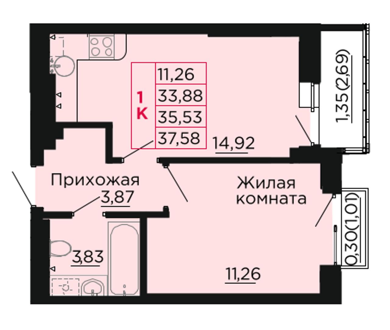 Общая площадь35,8 м²