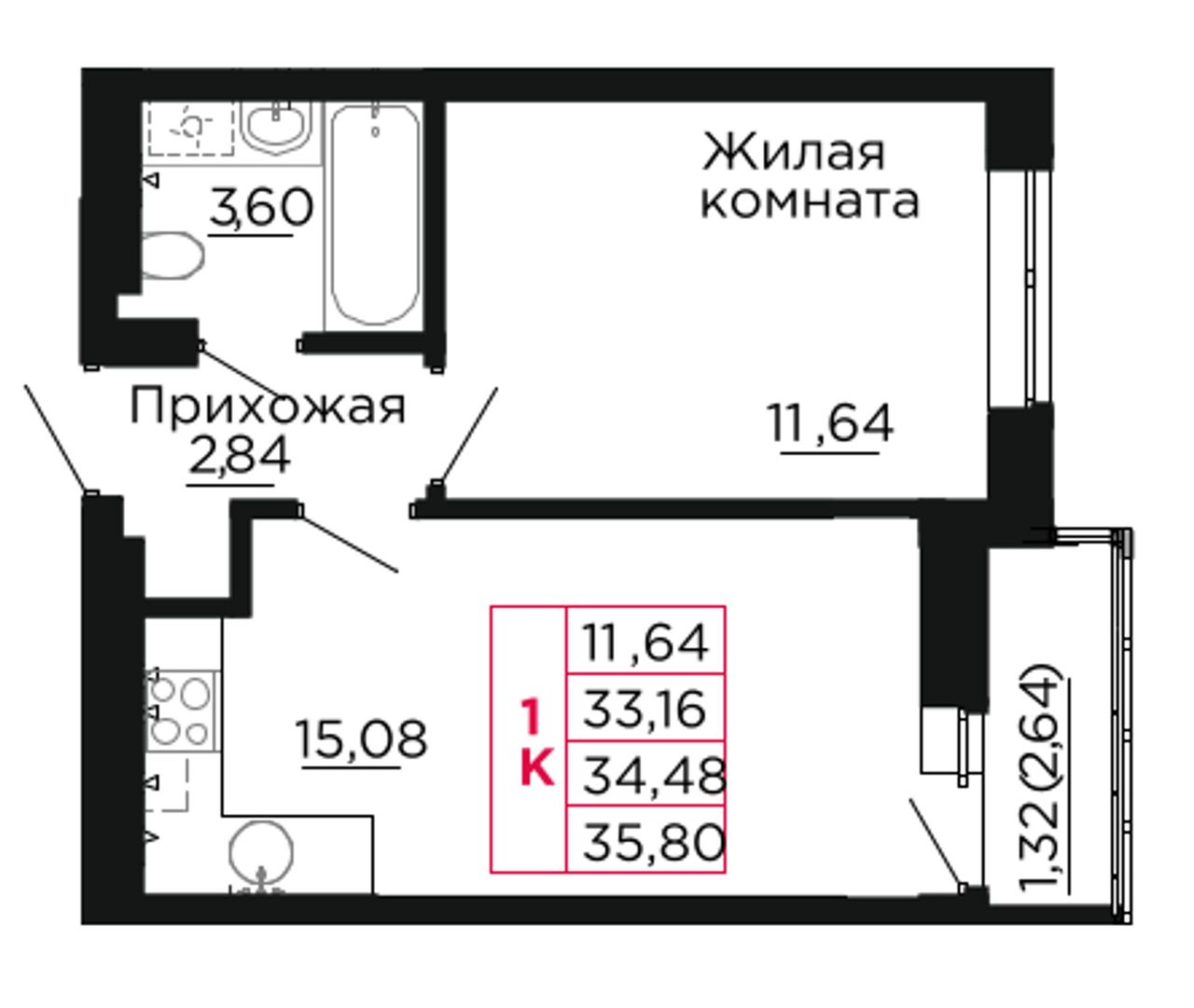 Общая площадь34,8 м²