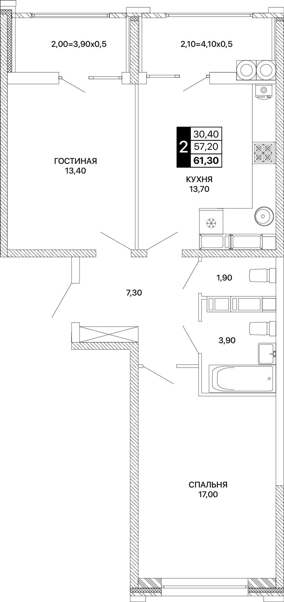 Общая площадь61,3 м²