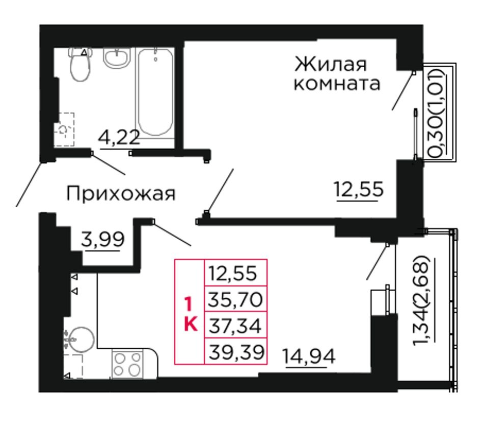 | 1-комн. | 43 м² | 5,5 - 7 млн ₽ |