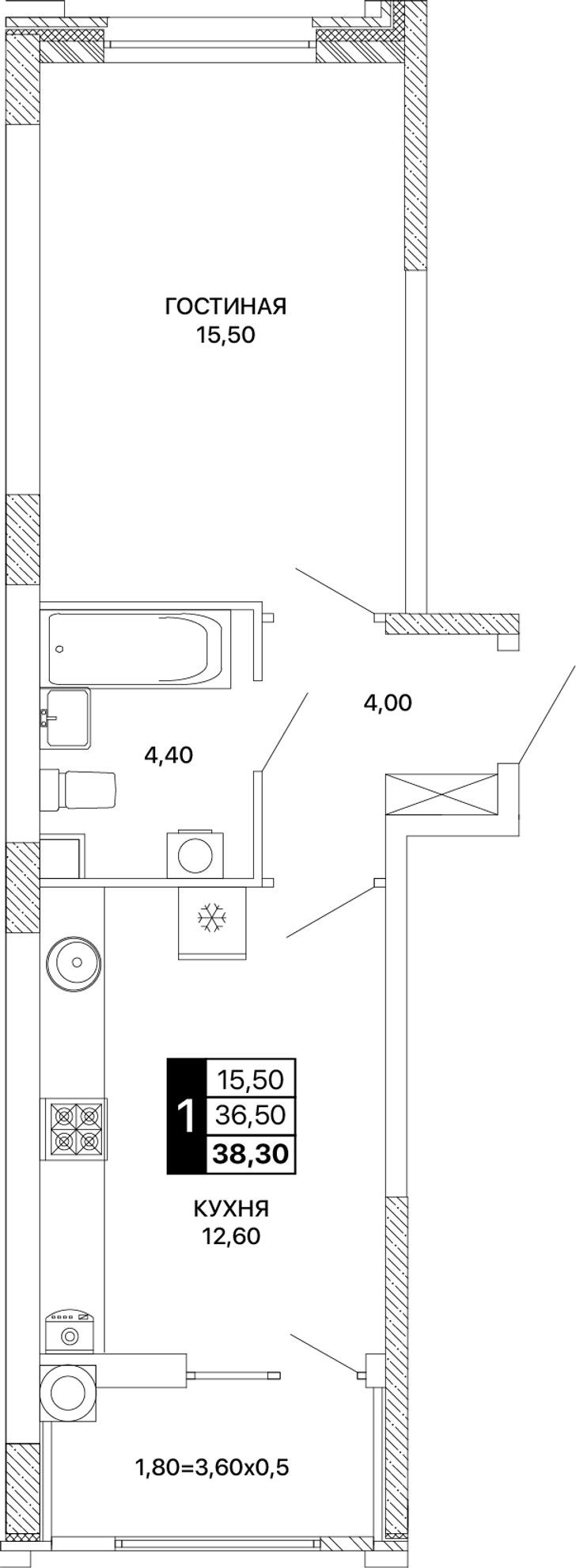 Общая площадь38,3 м²
