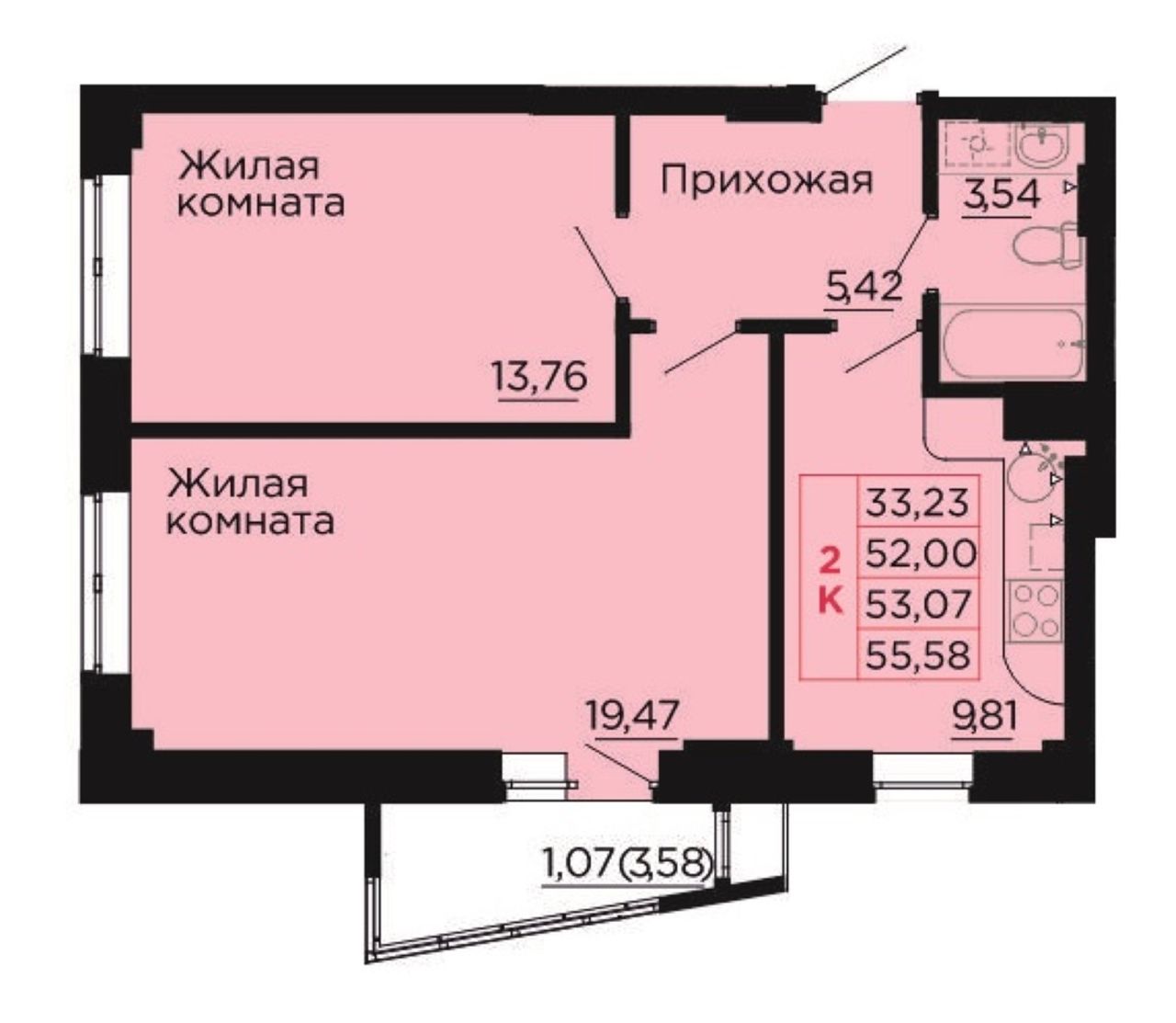 Общая площадь53,2 м²