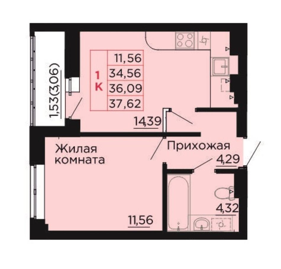 | 1-комн. | 43 м² | 5,5 - 7 млн ₽ |