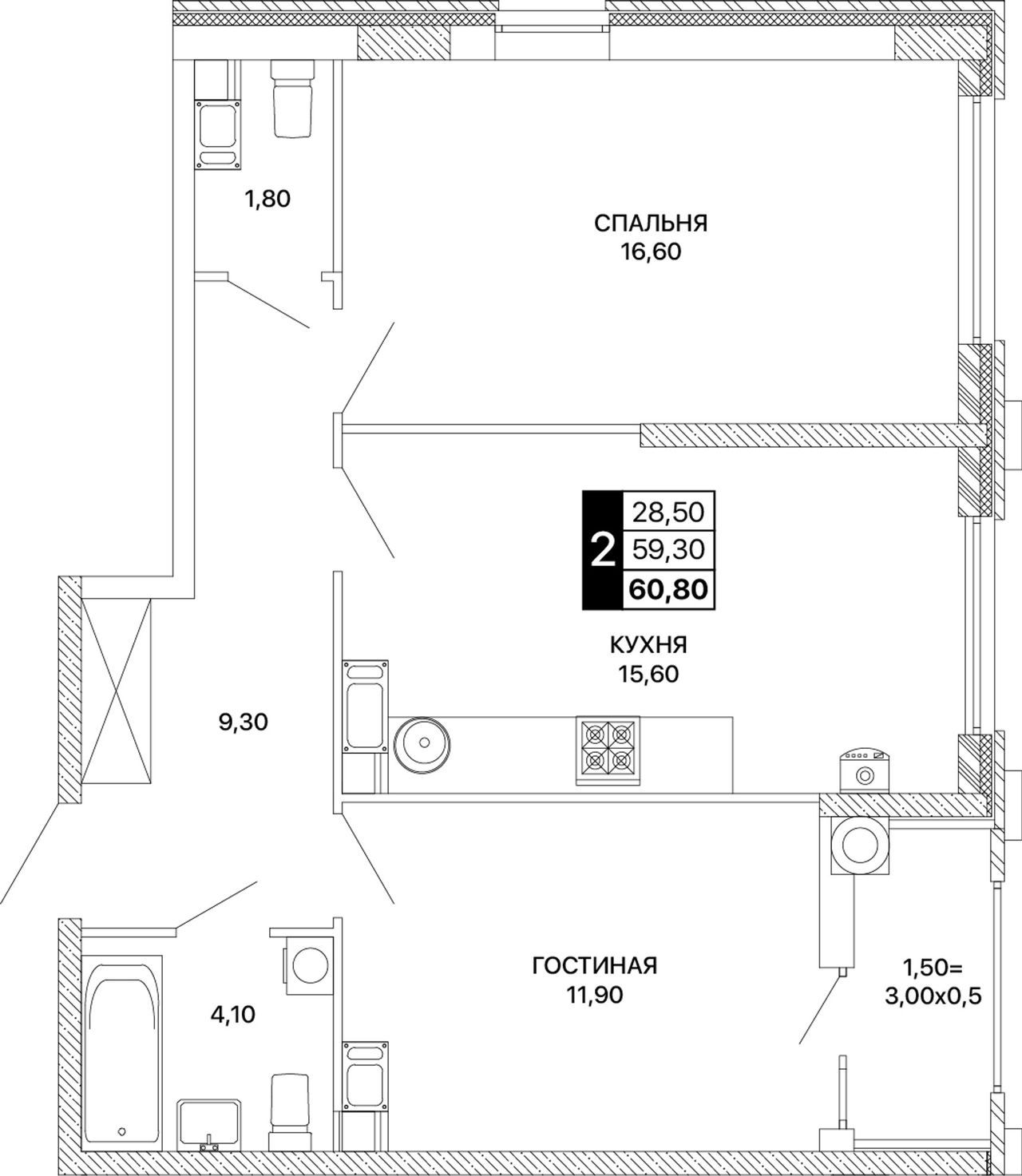 Общая площадь60,8 м²