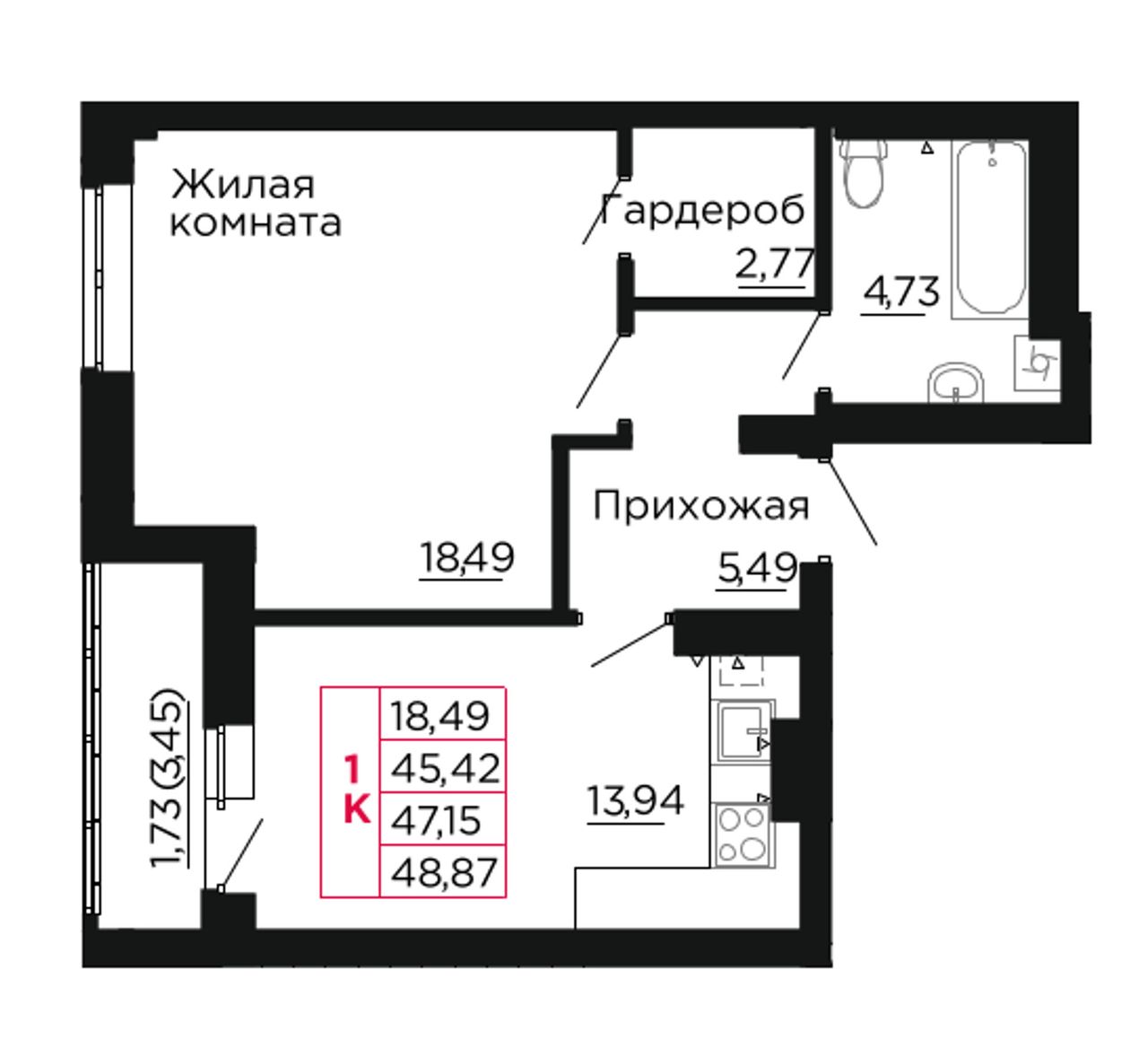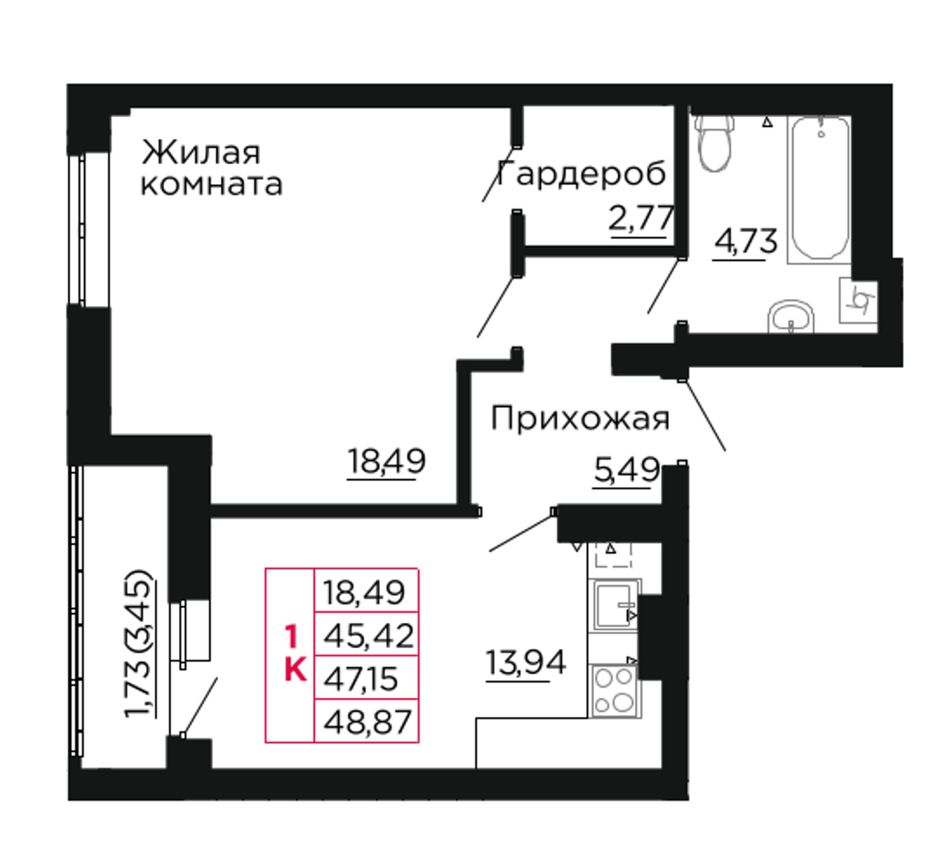 Общая площадь47,2 м²
