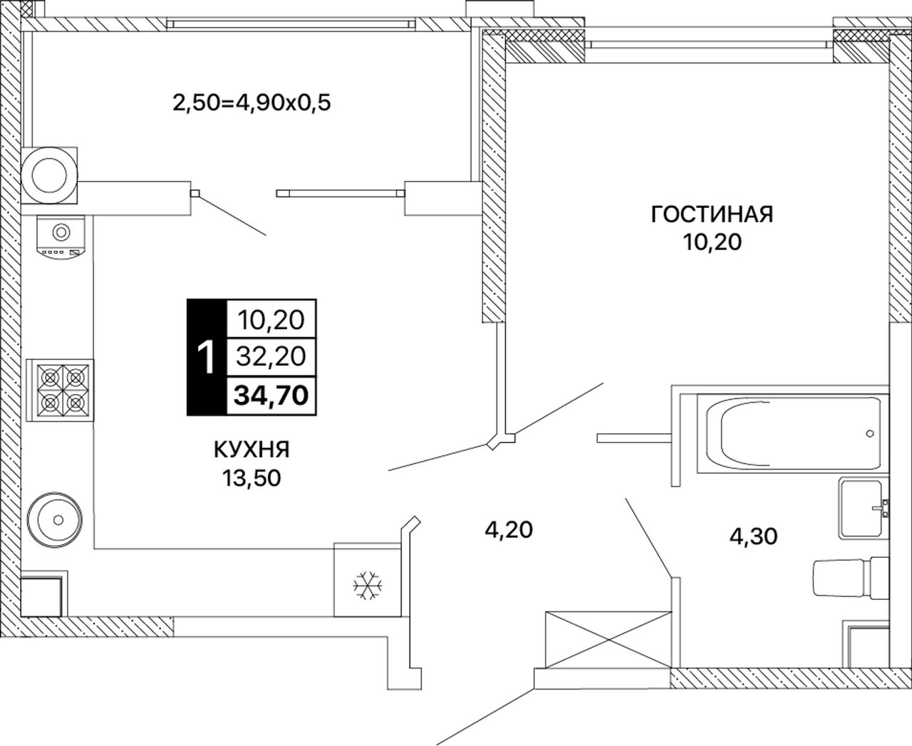 Общая площадь34,7 м²