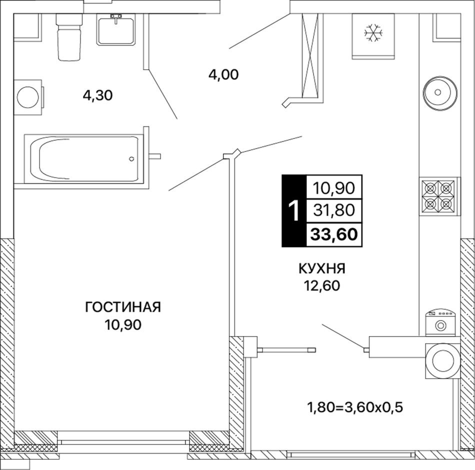 Общая площадь33,6 м²