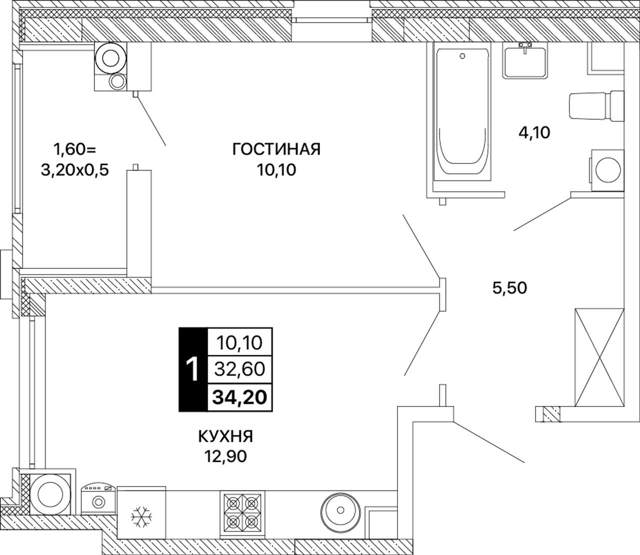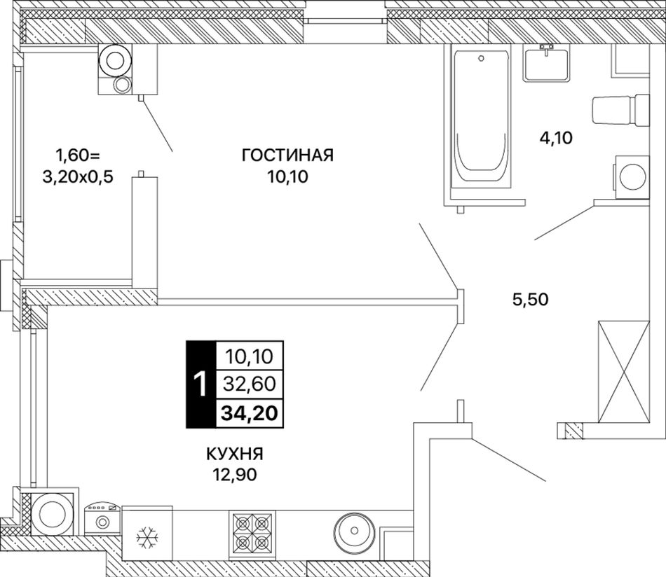 Общая площадь34,2 м²