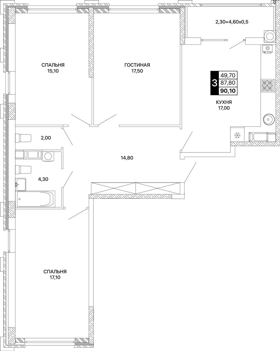 Общая площадь90,1 м²