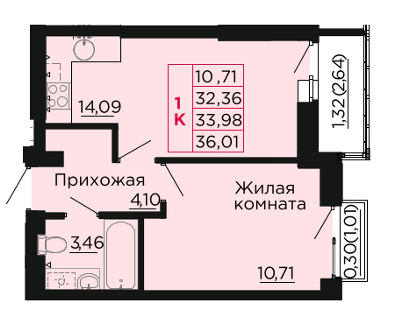 Общая площадь33,98 м²