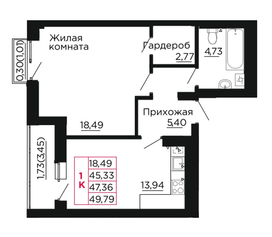 | 1-комн. | 43 м² | 5,5 - 7 млн ₽ |
