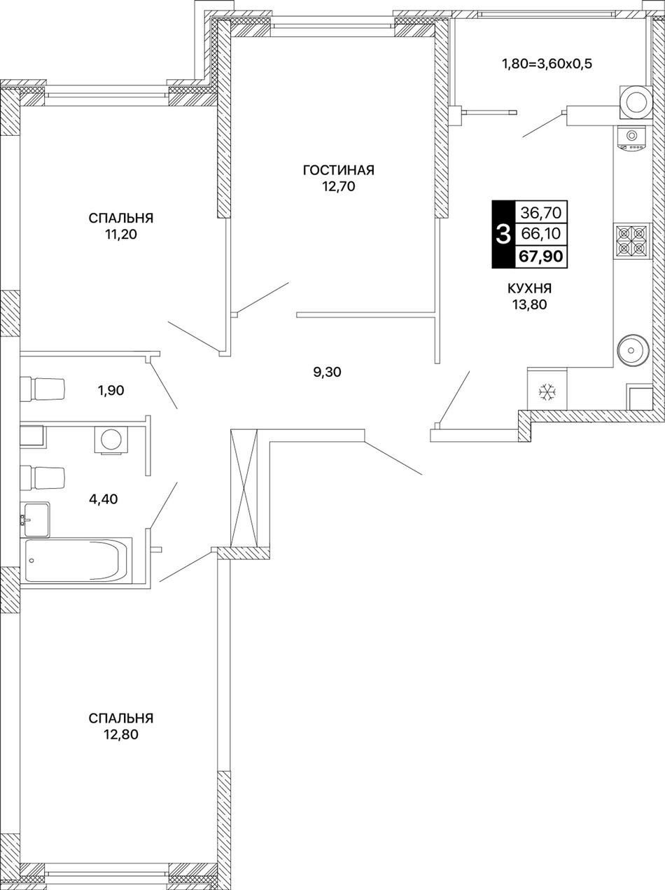 Общая площадь67,9 м²