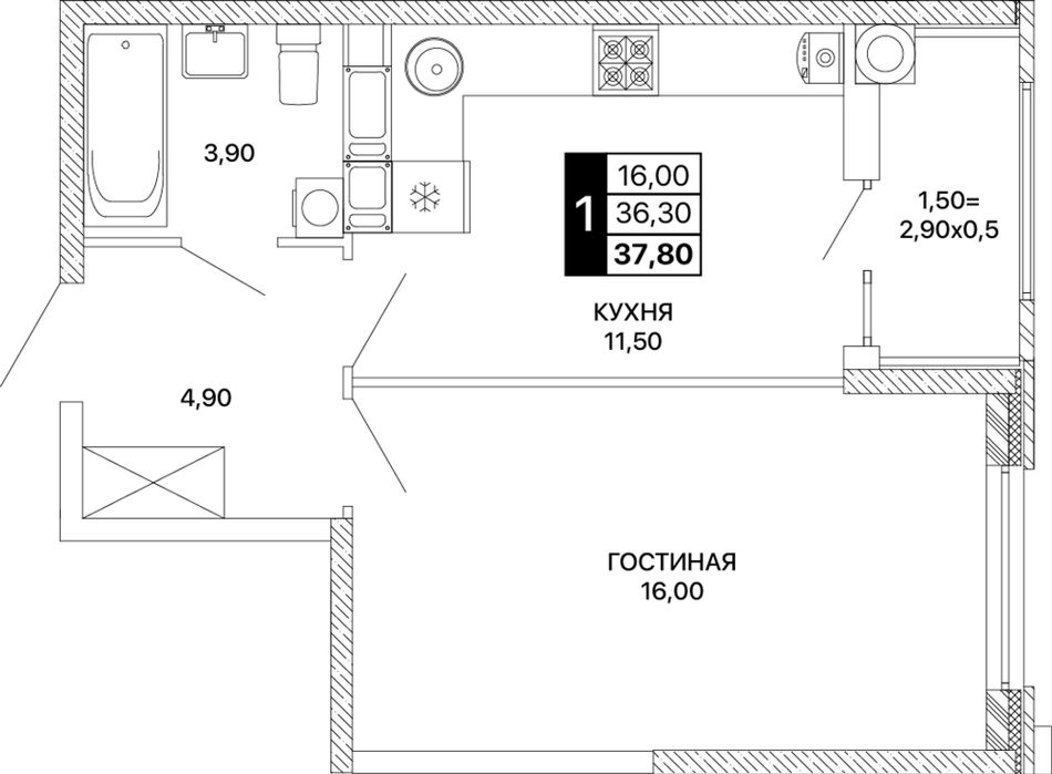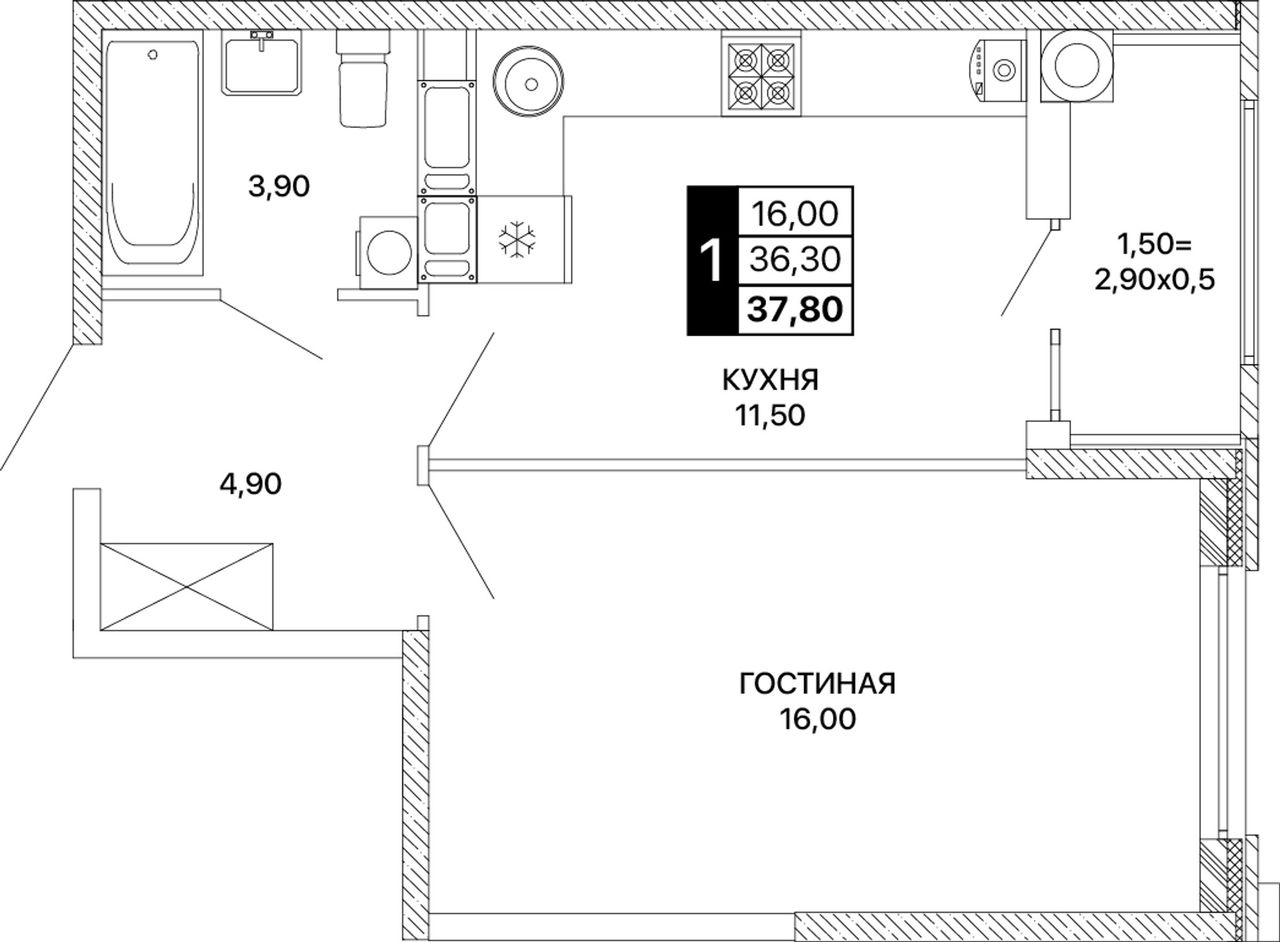 Общая площадь37,8 м²
