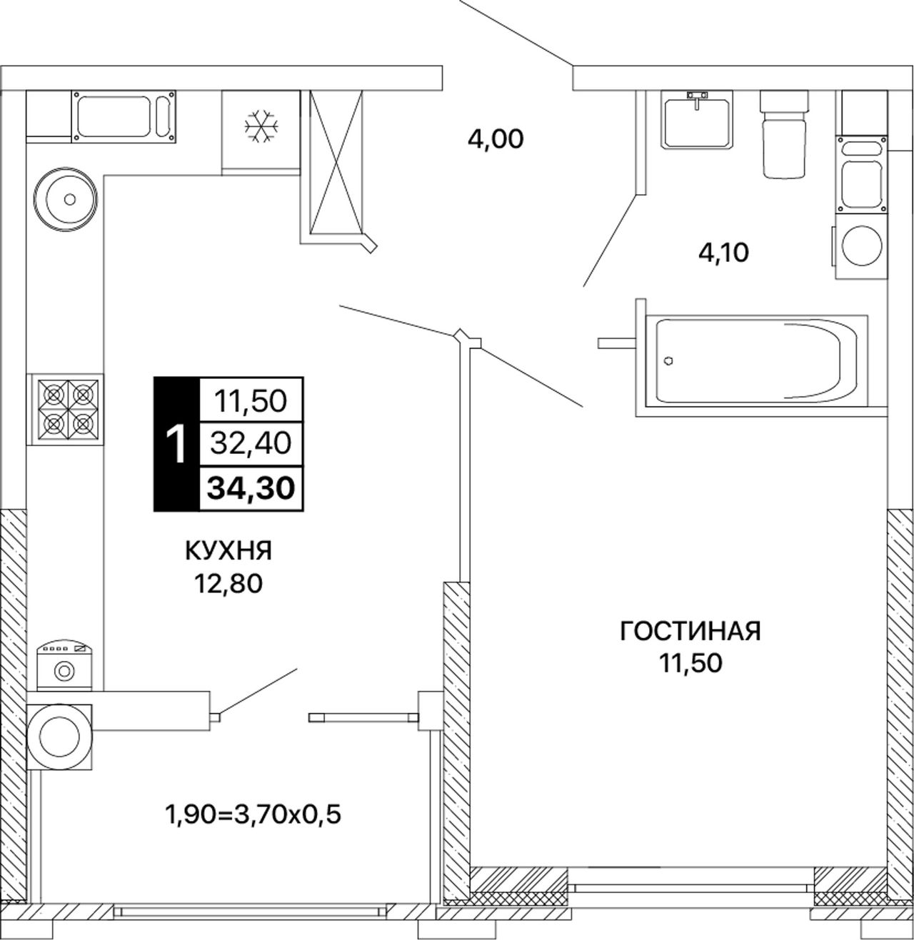 Общая площадь34,3 м²