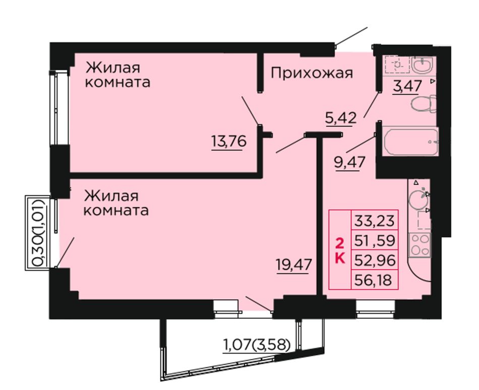 Общая площадь53,2 м²