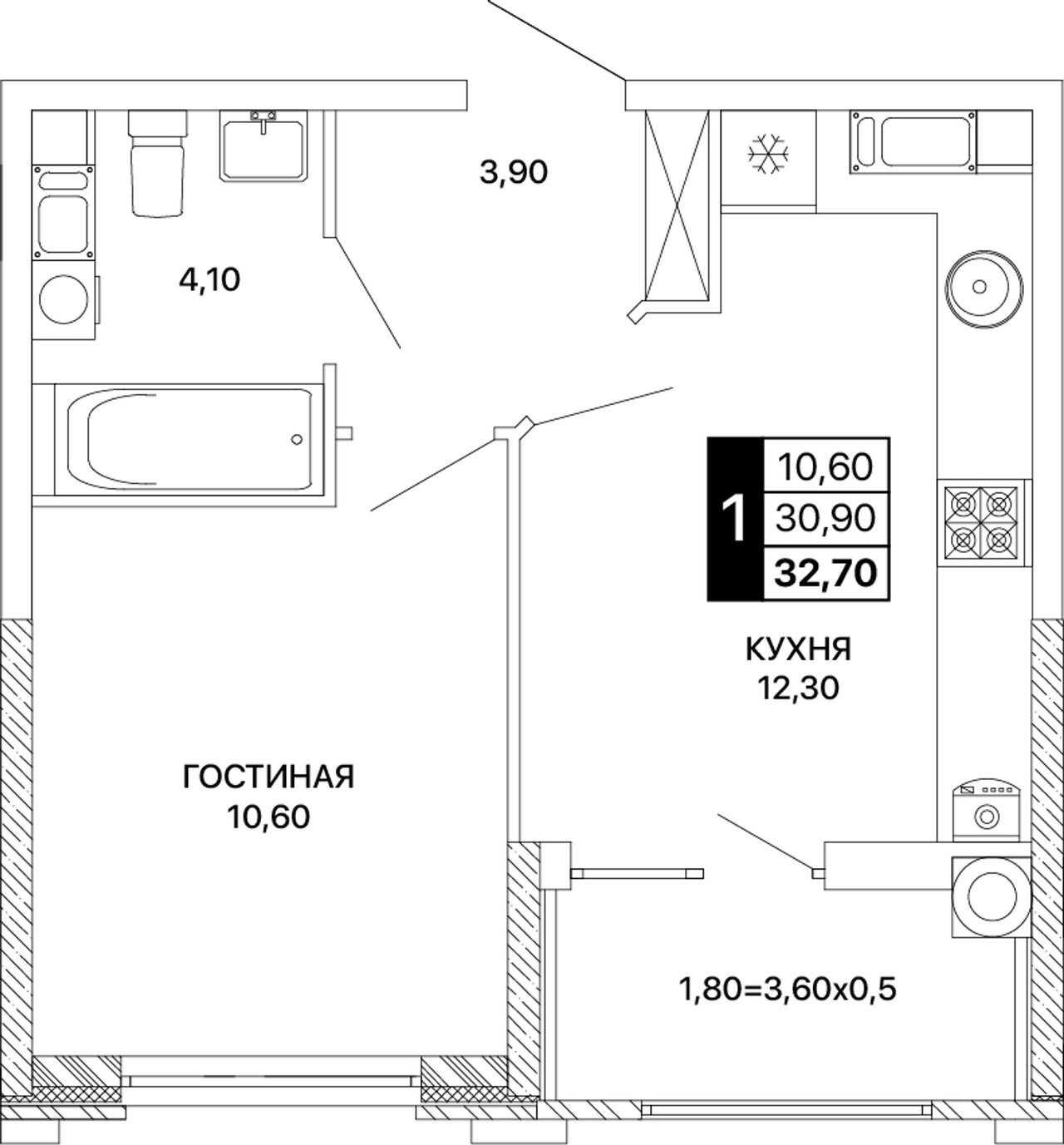 Общая площадь32,7 м²