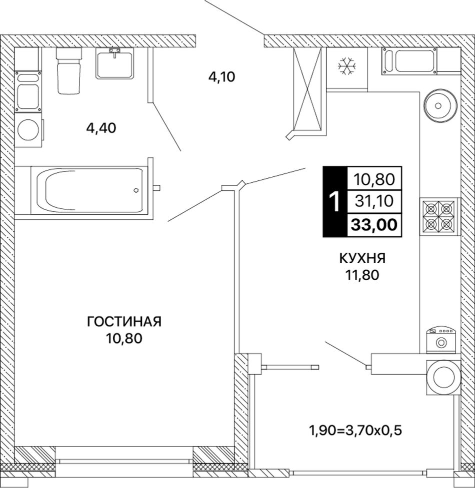 1-комнатная — 33 м² 9/20 эт. в Сияние