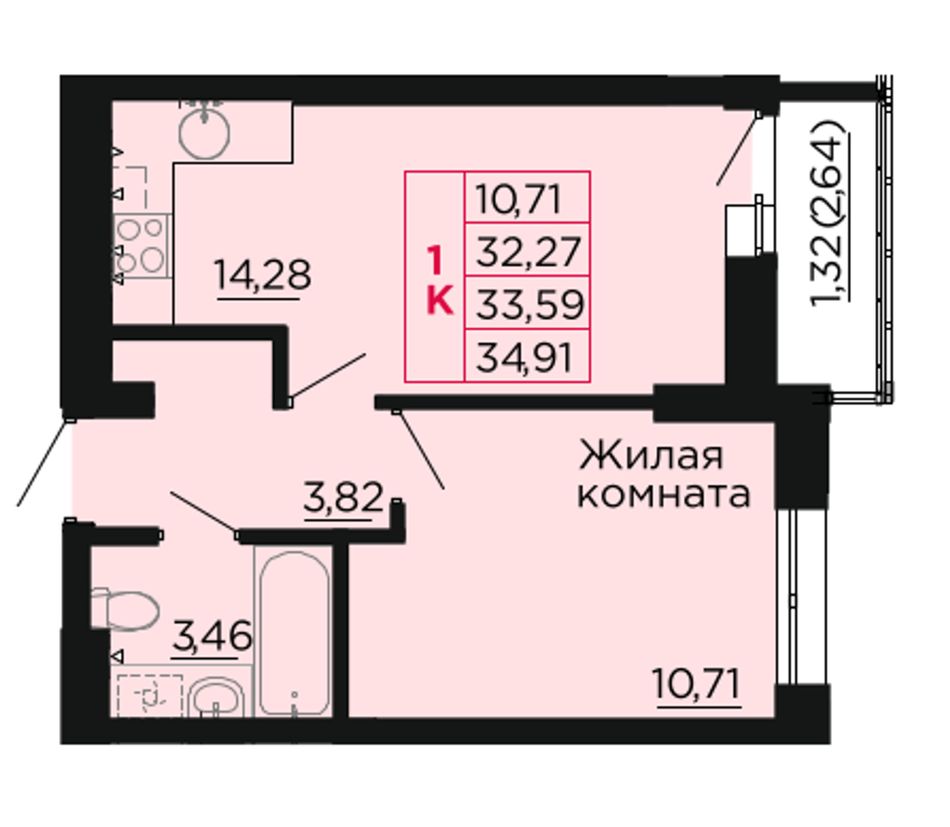 1-комнатная — 34,2 м² 9/10 эт. в Вишнёвый сад