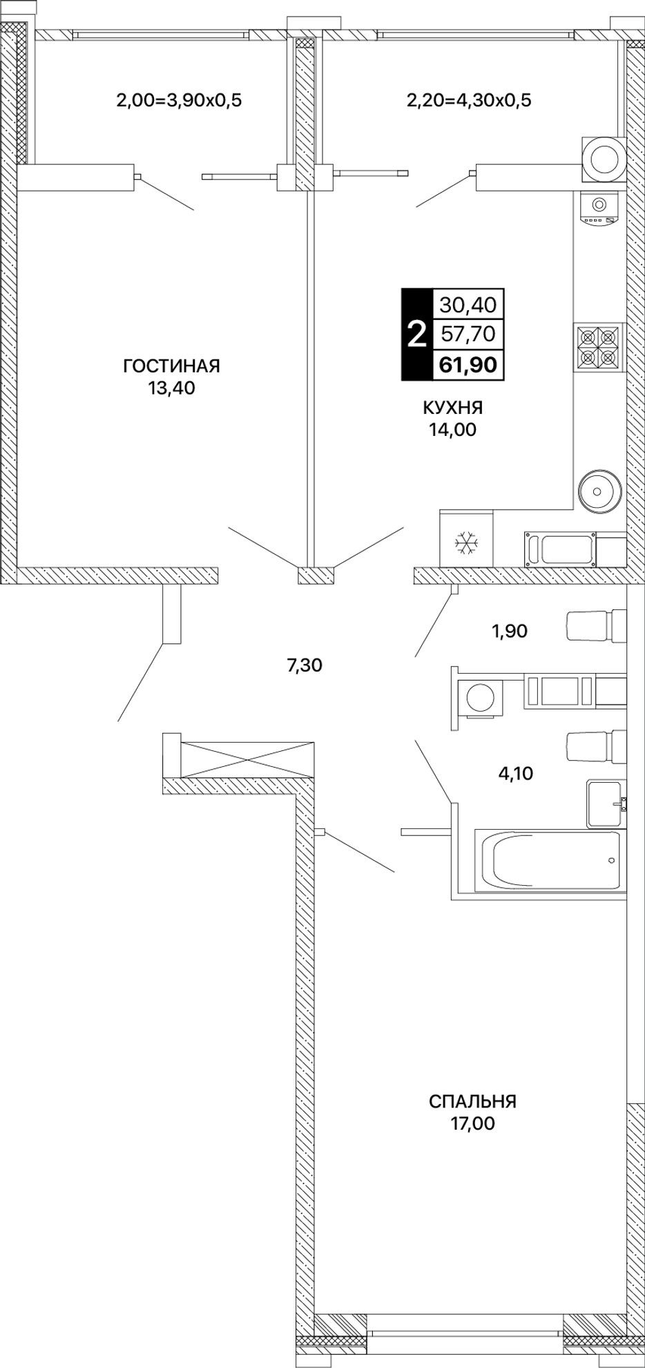 Общая площадь61,9 м²