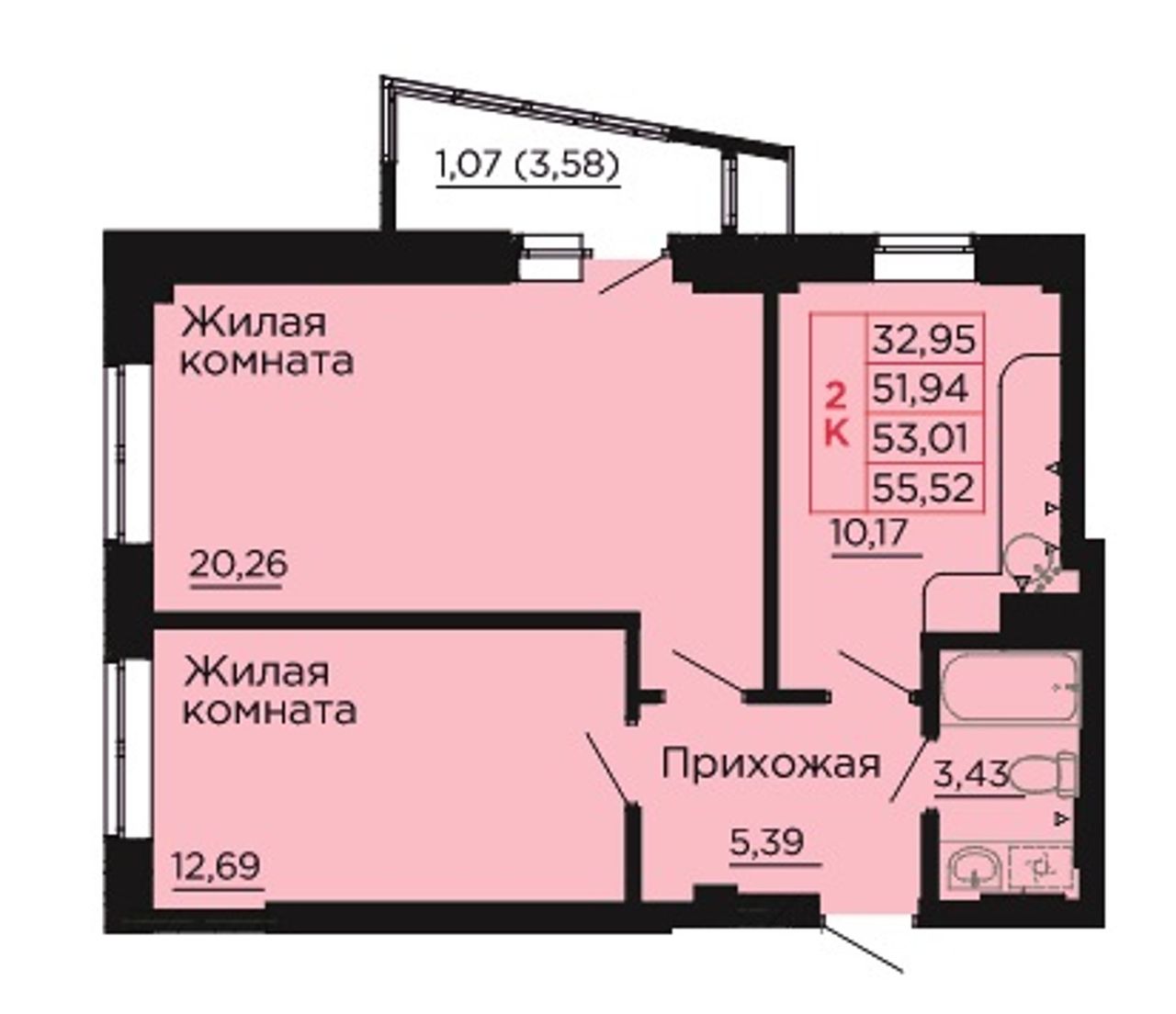 | 1-комн. | 43 м² | 5,5 - 7 млн ₽ |