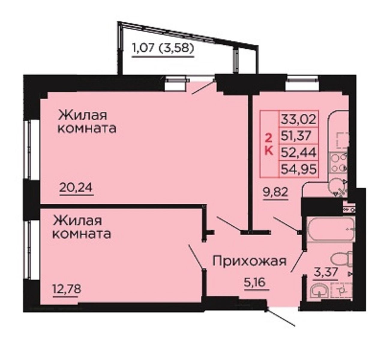 2-комнатная — 53,1 м² 2/9 эт. в Вишнёвый сад