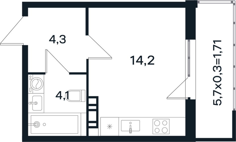 | Студия | 22 - 28 м² | 4,1 - 5,5 млн ₽ |