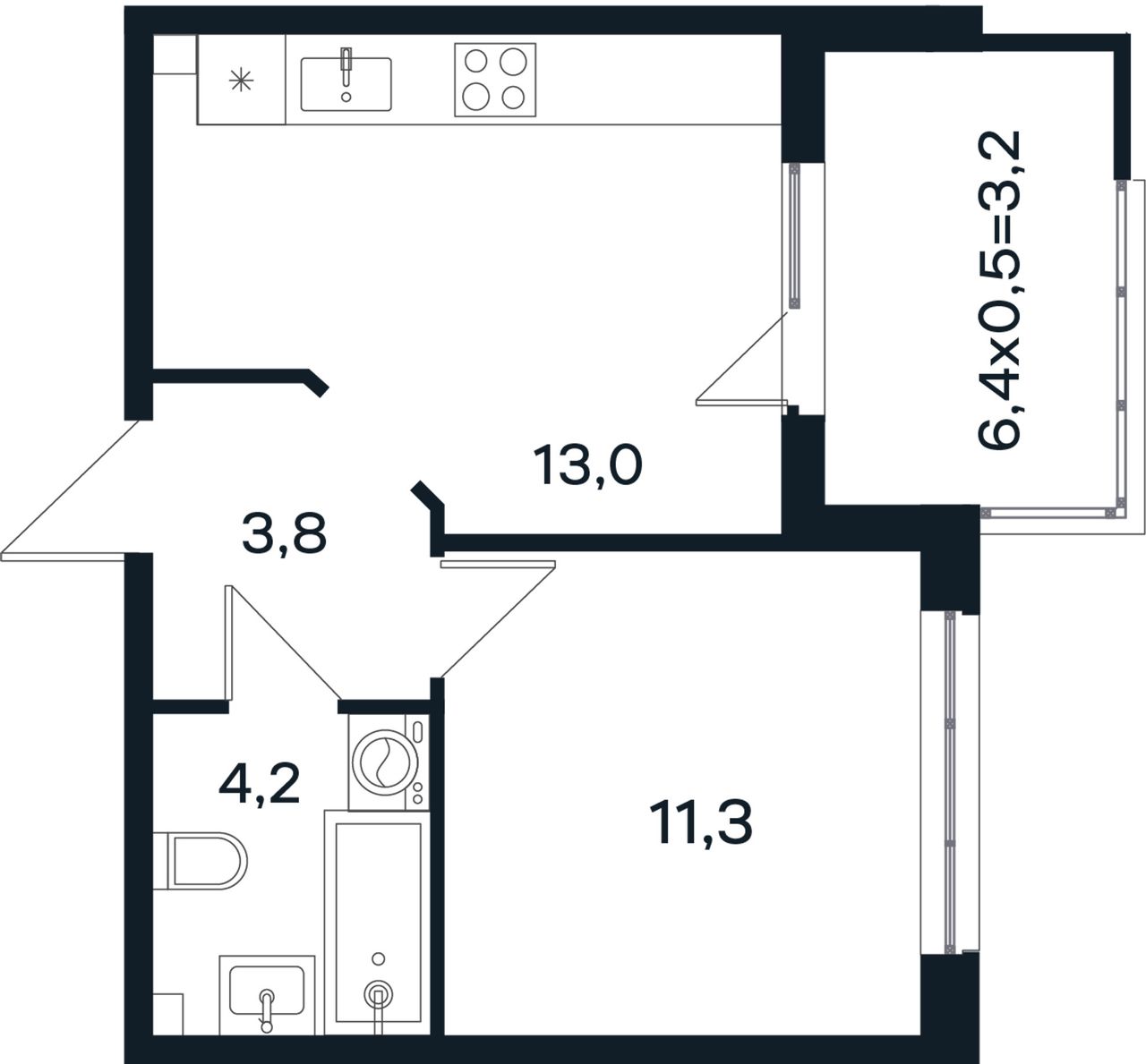 1-комнатная — 35,5 м² 1/4 эт. в Новая Елизаветка