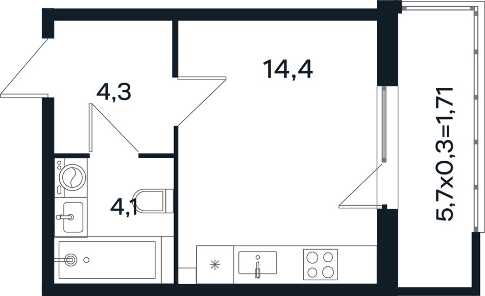 | Студия | 22 - 28 м² | 3,7 - 5,7 млн ₽ |