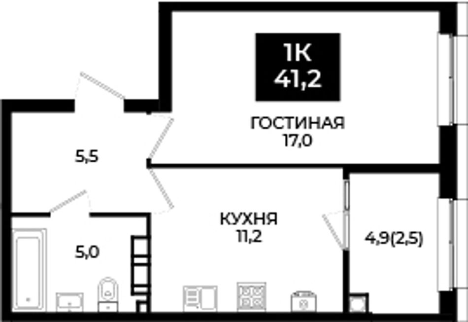1-комнатная — 41,2 м² 10/24 эт. в Новый Ставрополь