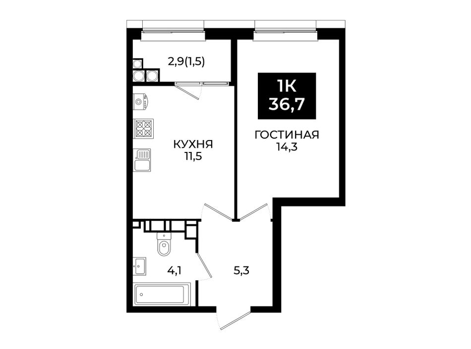 1-комнатная — 36,7 м² 14/24 эт. в Новый Ставрополь