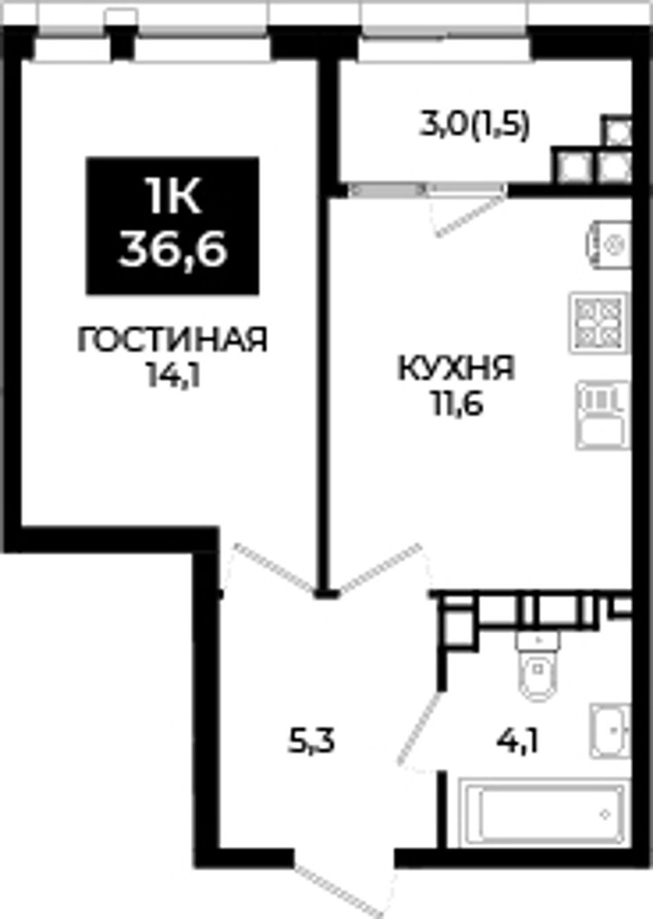 1-комнатная — 36,6 м² 17/24 эт. в Новый Ставрополь
