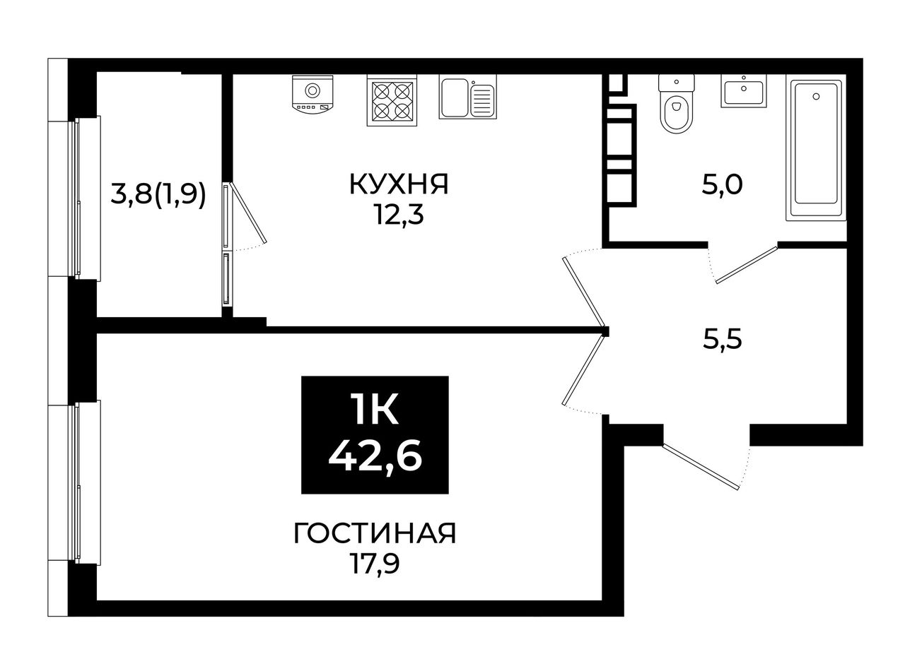 1-комнатная — 42,6 м² 11/24 эт. в Новый Ставрополь