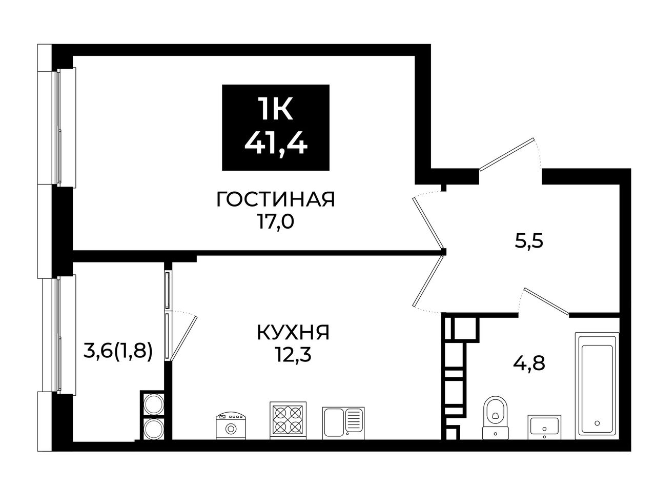 1-комнатная — 41,4 м² 14/24 эт. в Новый Ставрополь
