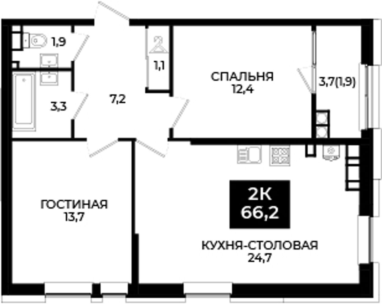 1-комнатная — 66,2 м² 19/24 эт. в Новый Ставрополь
