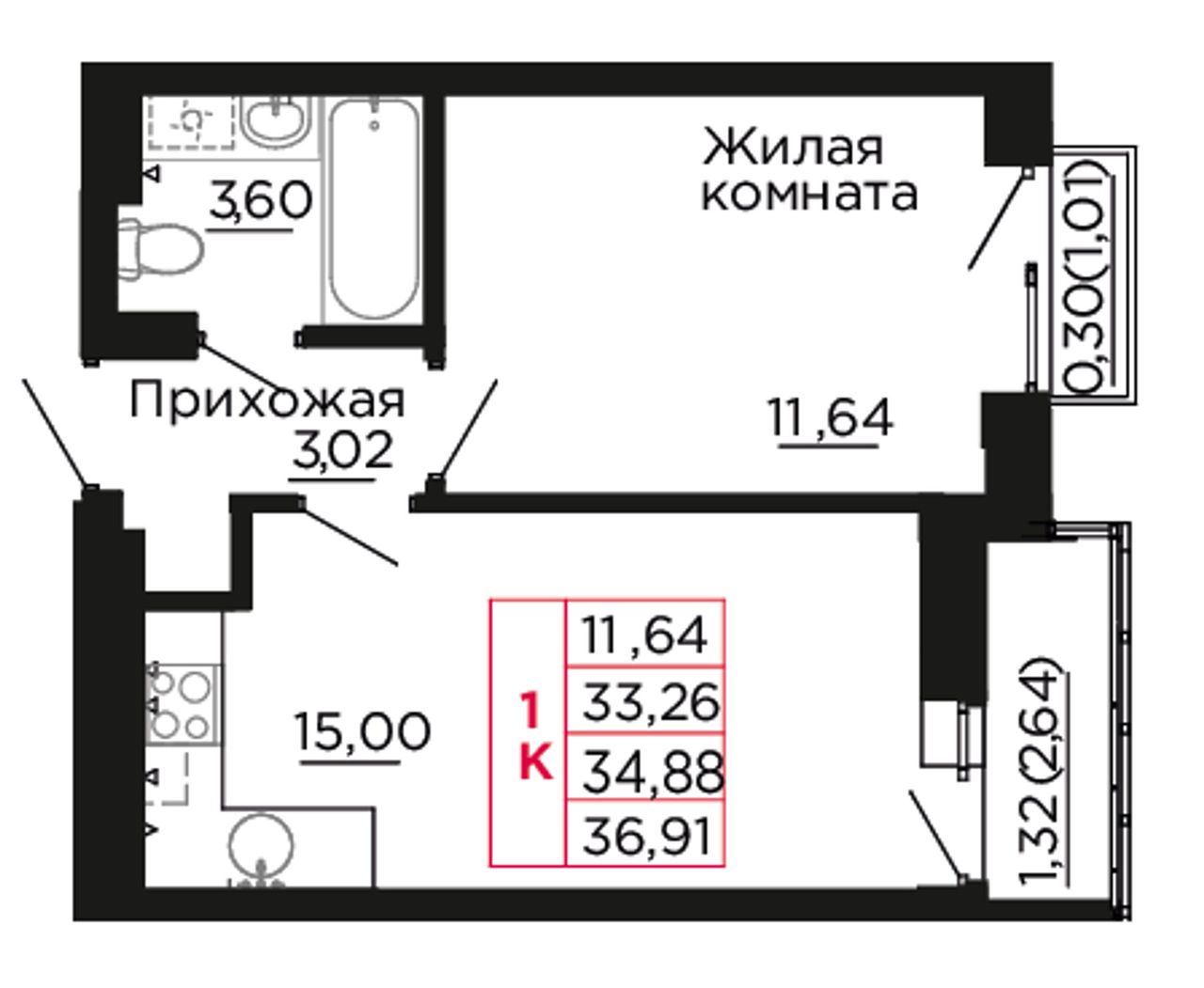 Общая площадь34,8 м²