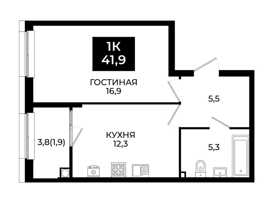 1-комнатная — 41,9 м² 2/24 эт. в Новый Ставрополь