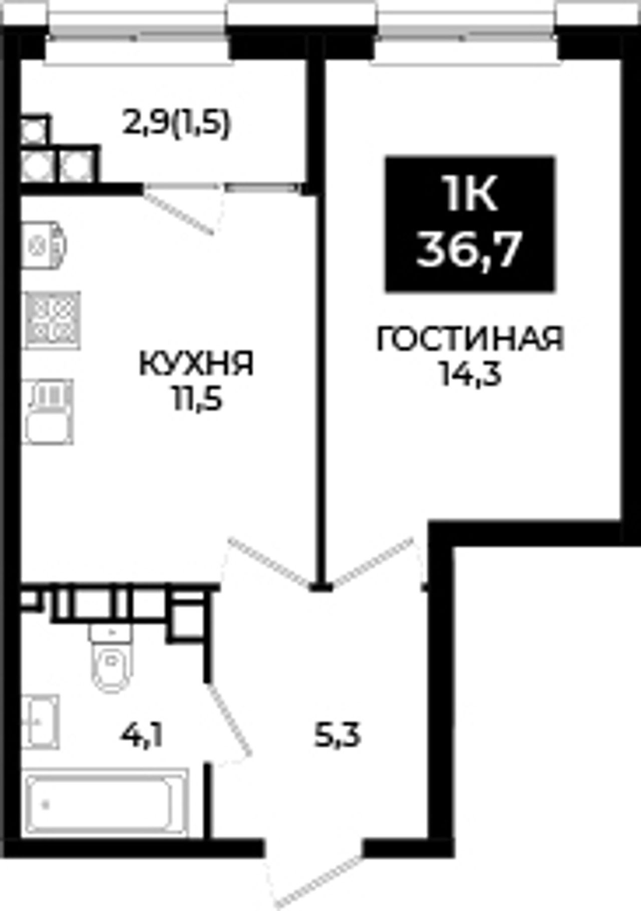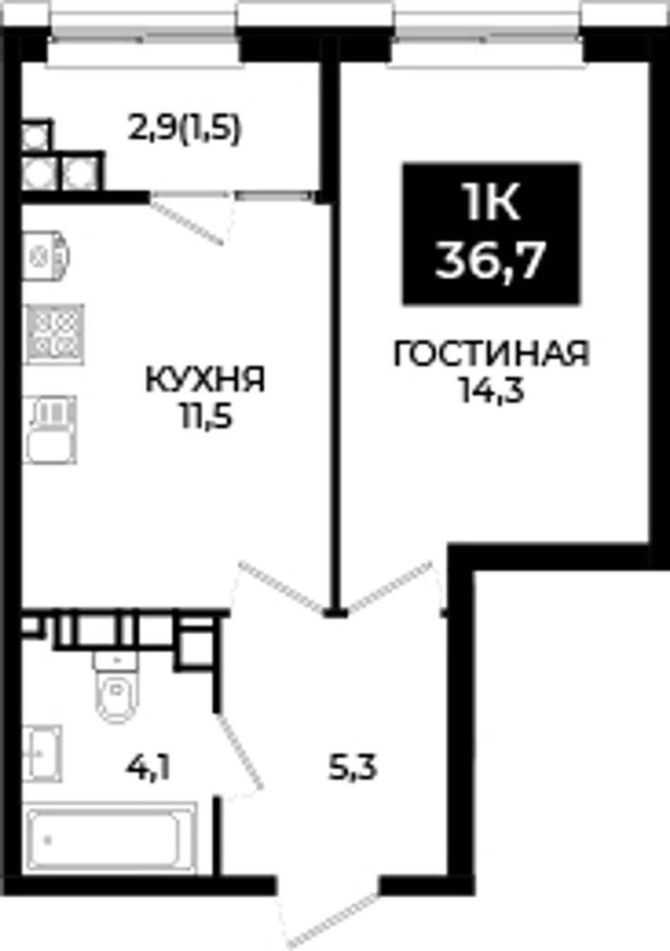 1-комнатная — 36,7 м² 13/24 эт. в Новый Ставрополь